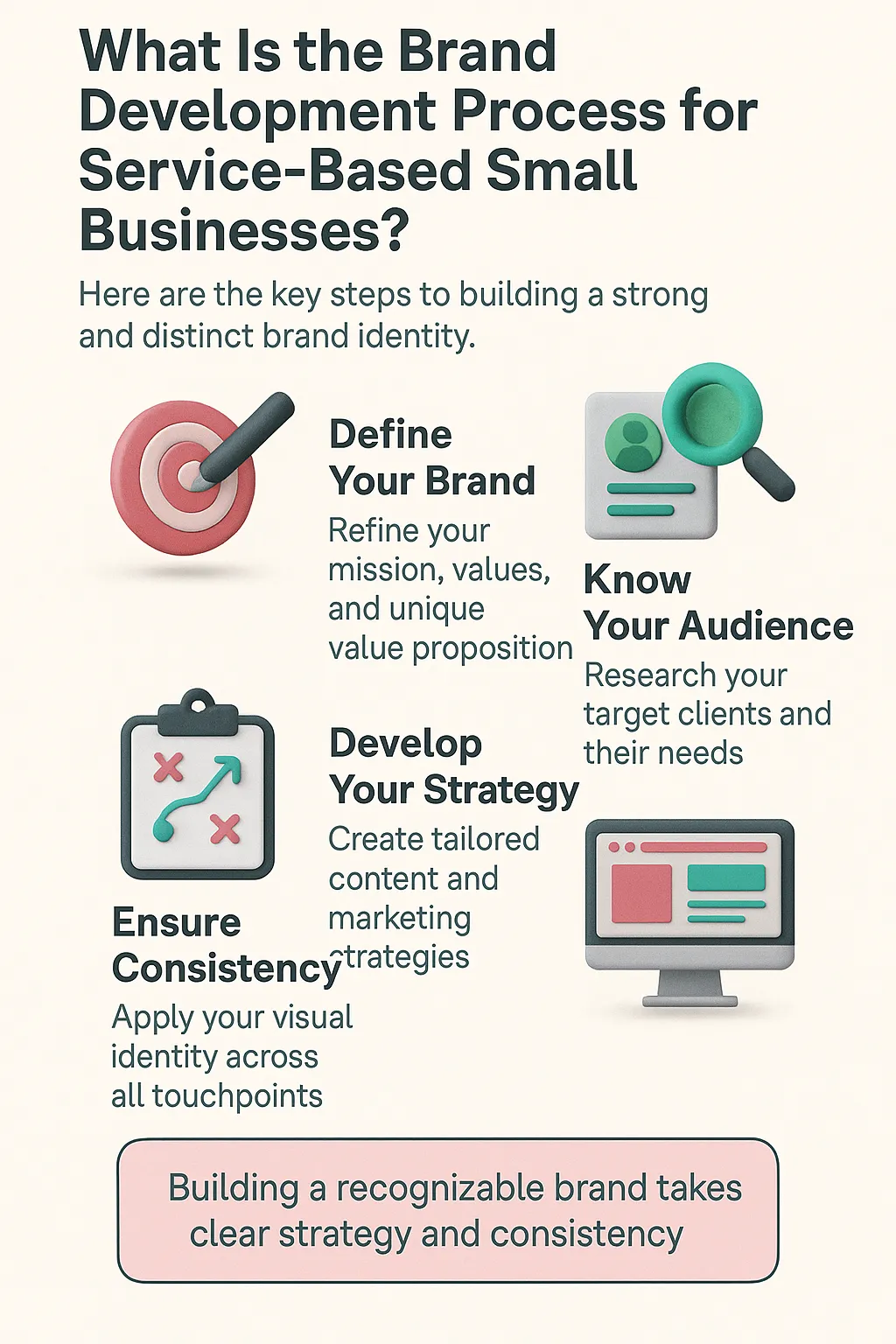 Developing a strong brand for a service-based small business isn’t about flashy logos or catchy slogans—it’s about clarity, consistency, and connection. The most successful small service brands follow a strategic brand development process that transforms what they do into what clients remember.